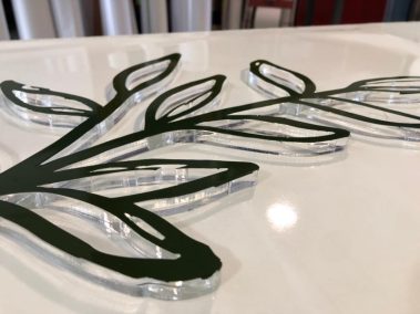 Vinils: decoració de les vidrieres en vinil glaçat i amb el logo també amb glaçat per trencar la monotonia d’una façana vidriada.