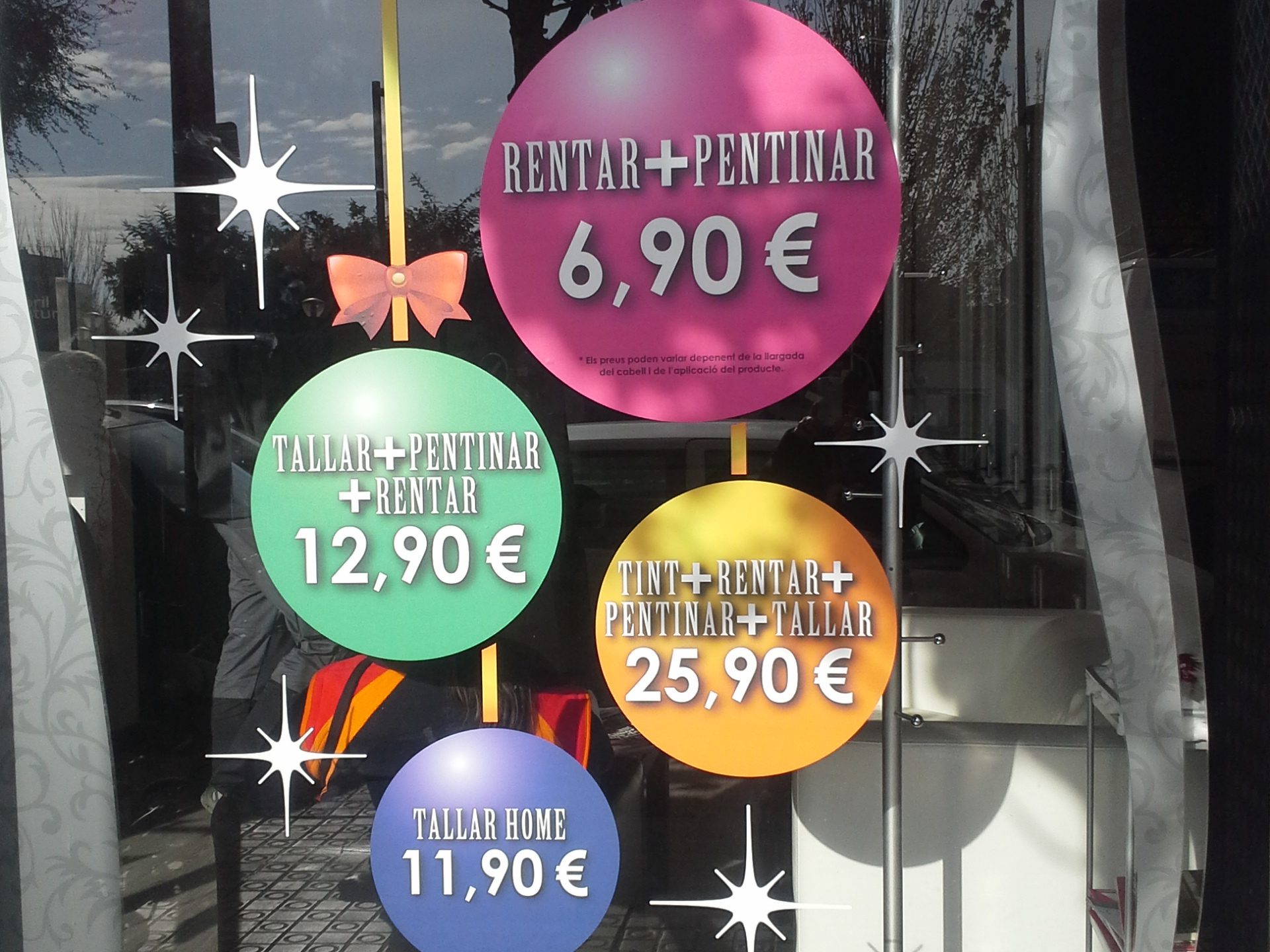 Vinils per aparadors amb tècnica vinil imprès i laminat col·locat per la part de fora dels aparadors. Retolació dels aparadors amb una combinació de vinil transparent imprès i vinils glaçat fresat.