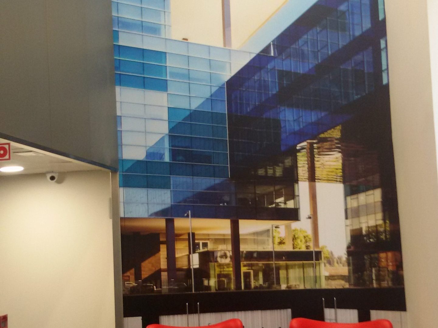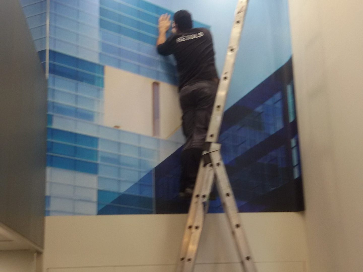 Mural de vinil per paret imprès i muntat dins el gimnàs imatge d’alta resolució de 700×350 cm.
